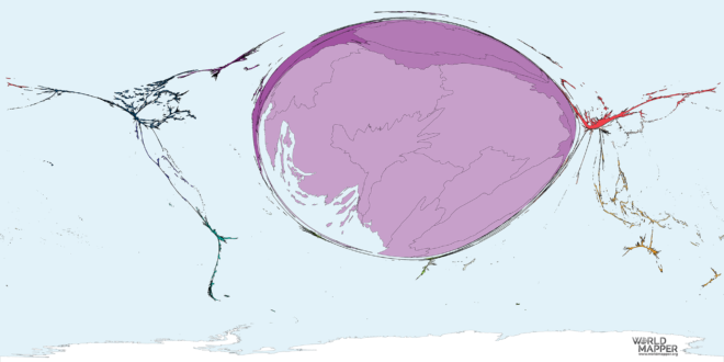 This map series illustrates the election results in three formats: a conventional land area map showing the winning party in each area, a hexagon cartogram where each parliamentary constituency is represented by a hexagon reflecting the new parliament’s composition, and a gridded population cartogram resizing each area based on its population.