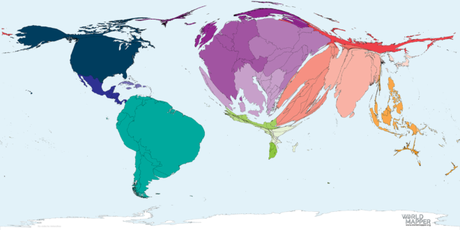This map shows the land surface resized by its population overlaid with data about the mortality of Covid-19/coronavirus calculated as percent deaths of all reported cases. Data sources This map…